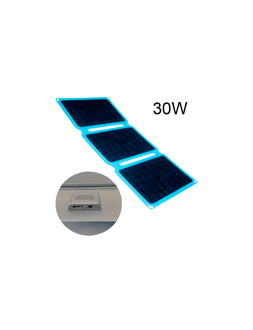 Ο φορητός ηλιακός φορτιστής SRUSB-30 Portable 30 Watt Solar Panel Foldable Mobile Device, είναι ένας φορητός ηλιακός φορτιστής με USB 5V και επιπλέον έξοδο 18V - 24V -1,9A. Μπορείτε να φορτίσετε άμεσα το κινητό σας μέσω USB. Μπορείτε επίσης να τροφοδοτήσετε οποιαδήποτε άλλη συμβατή συσκευή μέσω της θύρας USB.