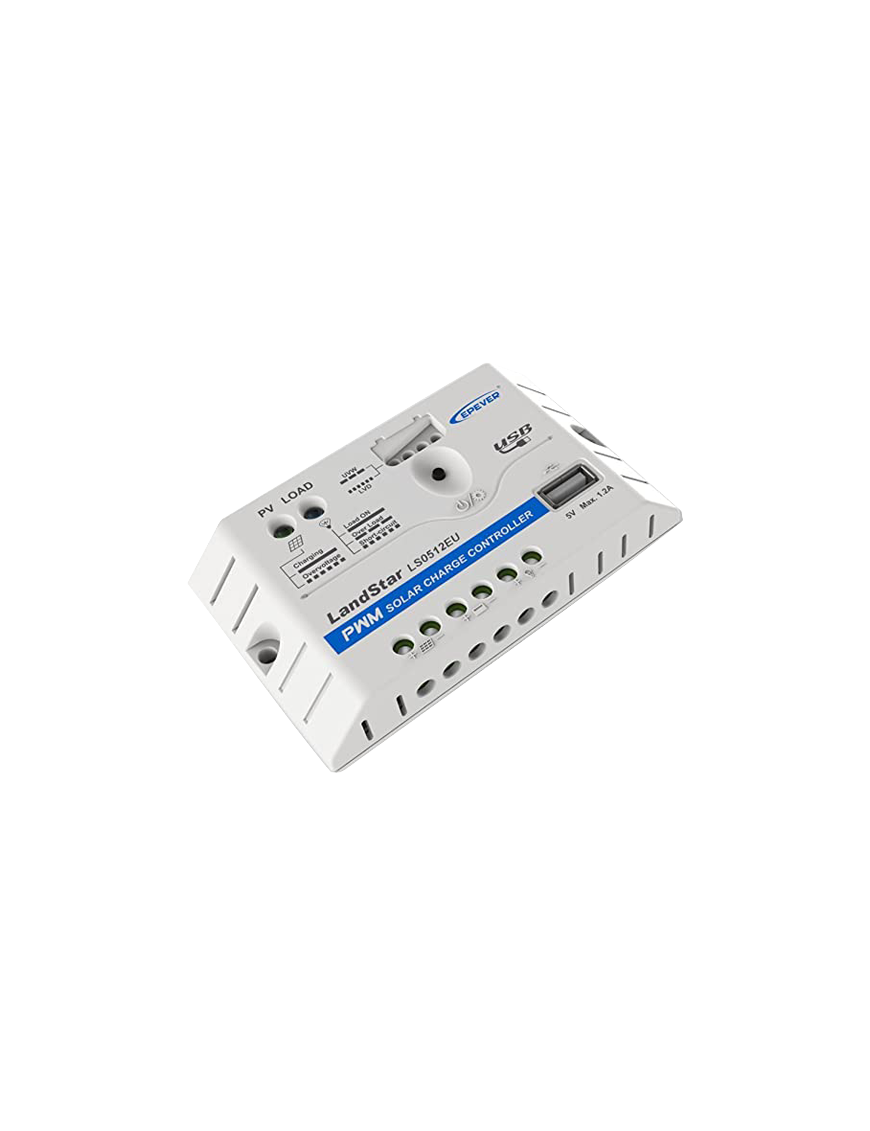 Ρυθμιστής φόρτισης PMW LS0512E 5A / 12V για φωτοβολταϊκές εγκαταστάσεις. Κατάλληλος για φωτοβολταϊκά συστήματα μικρού μεγέθους. Βελτιστοποιεί την απόδοση του συστήματος και επιμηκύνει την διάρκεια ζωής της μπαταρίας.