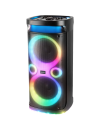 Το μοντέρνο design με τα πολύχρωμα Moving Disco Light LED δημιουργεί εντυπωσιακή οπτική εμπειρία, ενώ η τροφοδοσία γίνεται είτε από ρεύμα 230V είτε από επαναφορτιζόμενη μπαταρία 7.4V. Η διαχείριση είναι εύκολη και εξ αποστάσεως με το τηλεχειριστήριο πλήρους λειτουργίας.