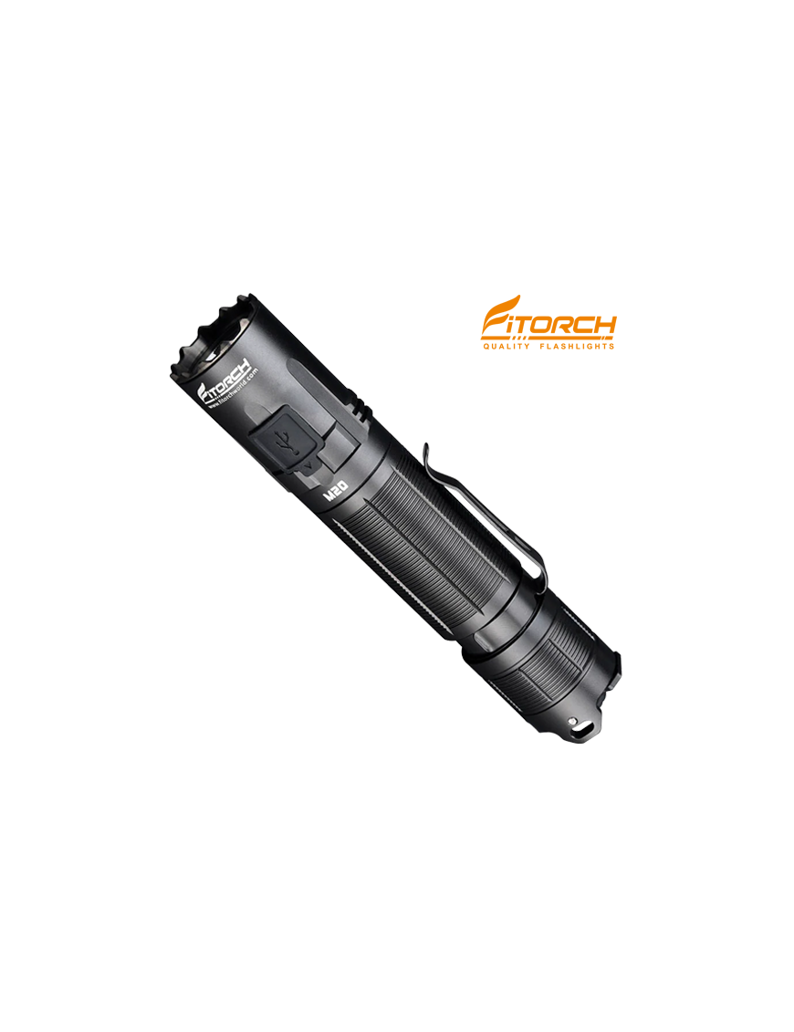 Ο φακός Fitorch M20 έχει μέγιστη φωτεινότητα τα 3000 lumen, ενώ η μέγιστη απόσταση δέσμης μπορεί να φτάσει τα 250 μέτρα. Τροφοδοτείται από μια επαναφορτιζόμενη μπαταρία 18650 και διαθέτει 4 λειτουργίες φωτισμού (Τurbo-High-Medium-Low) καθώς και λειτουργίες Strobe και SOS.