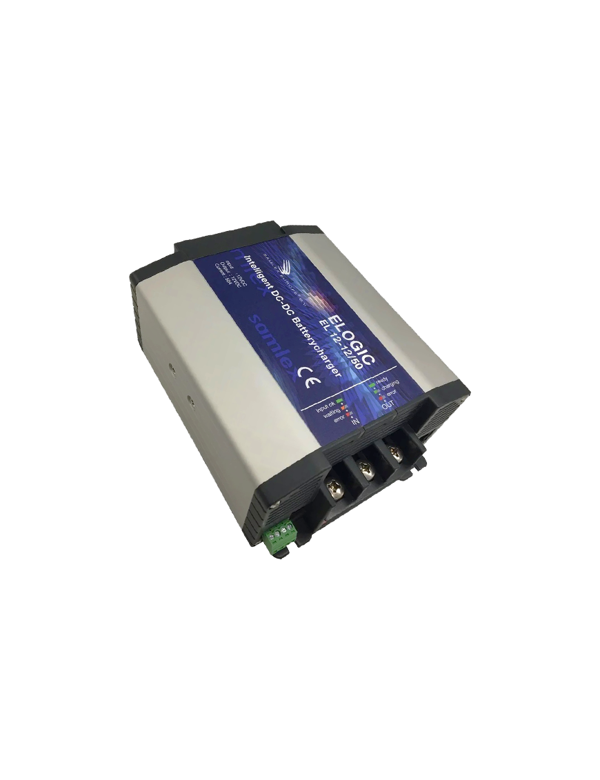 Ο φορτιστής Elogic λαμβάνει υπόψη όλα αυτά τα προγράμματα και φορτίζει εφόσον η μπαταρία του οχήματος είναι μεγαλύτερη από 12,5V.Με τον εξελιγμένο σχεδιασμό του διατηρεί τις μπαταρίες σε άριστη κατάσταση και ελαχιστοποιεί τις αστοχίες, με αποτέλεσμα τη μέγιστη διάρκεια ζωής της μπαταρίας επιτρέποντάς να εγκαταστήσετε μια δεύτερη μπαταρία στο αυτοκίνητό σας. Ανεξάρτητα από την τάση του εναλλάκτη, ο φορτιστής Elogic παρέχει μια προ-προγραμματισμένη τάση και ρεύμα φόρτισης στη δεύτερη μπαταρία. Το Elogic θα παρέχει ρεύμα έως και 50 αμπέρ σε ένα σύστημα 12 volt, ανάλογα με την κατάσταση φόρτισης της δεύτερης μπαταρίας. Μετά από μια φόρτιση ενίσχυσης (ταχεία φόρτιση), ο φορτιστής θα μεταβεί αυτόματα σε λειτουργία float, έτσι ώστε η δεύτερη μπαταρία να μην υπερφορτίζεται ποτέ. Όλα αυτά ανεξάρτητα από το επίπεδο της τάσης του εναλλάκτη. Εγκατάσταση του διανομέα / φορτιστή ρεύματος φόρτισης Samlex Elogic Για να λειτουργήσει, το Elogic πρέπει να συνδεθεί στην επαφή της μίζας όσο το δυνατόν πιο κοντά στον θετικό πόλο της μπαταρίας της μίζας. Ο φορτιστής θα σταματήσει να φορτίζει εάν η ανάφλεξη της μίζας είναι απενεργοποιημένη ή εάν η τάση της μπαταρίας της μίζας πέσει κάτω από 12,4 βολτ, ανάλογα με τον τρόπο σύνδεσης του Elogic. Το ELOGIC έχει το σήμα ποιότητας αυτοκινήτου E11 και κατάλληλος για κάθε περίπτωση που απαιτείται αξιόπιστη DC τροφοδοσία.