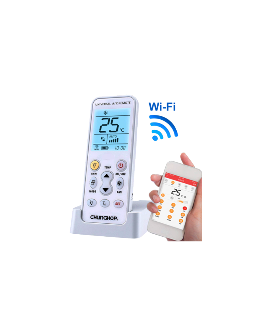 CHUNGHOP K-390EW WiFi Smart Universal Κλιματιστικό Τηλεχειριστήριο A/C με φωτισμό οθόνης, φως LED & βάση, υποστήριξη δικτύου 2G / 3G / 4G / WiFi, βύσμα ΕU/US.