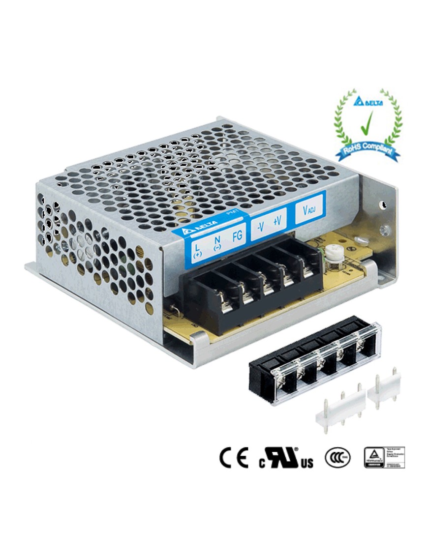 Τροφοδοτικό switching σειράς PMT DELTA 50W 12V/4,2A διάτρητο με ελεύθερο αερισμό. Κατάλληλο για τοποθέτηση σε εσωτερικούς χώρους, όπως ηλεκτρικούς πίνακες, πεδία χαμηλής τάσης, ψευδοροφές, μεταλλικά ή πολυεστερικά κιβώτια ειδικών κατασκευών. Τροφοδοτικό που συνδυάζει χαμηλό κόστος απόκτησης με υψηλή ποιότητα κατασκευής και μεγάλη διάρκεια ζωής περισσότερο από 700,000 ώρες λειτουργίας. Με τερματικά block για εύκολη τοποθέτηση καλωδίων και ρυθμιζόμενη τάση εξόδου +-10% με διακύμανση <150mvpp.